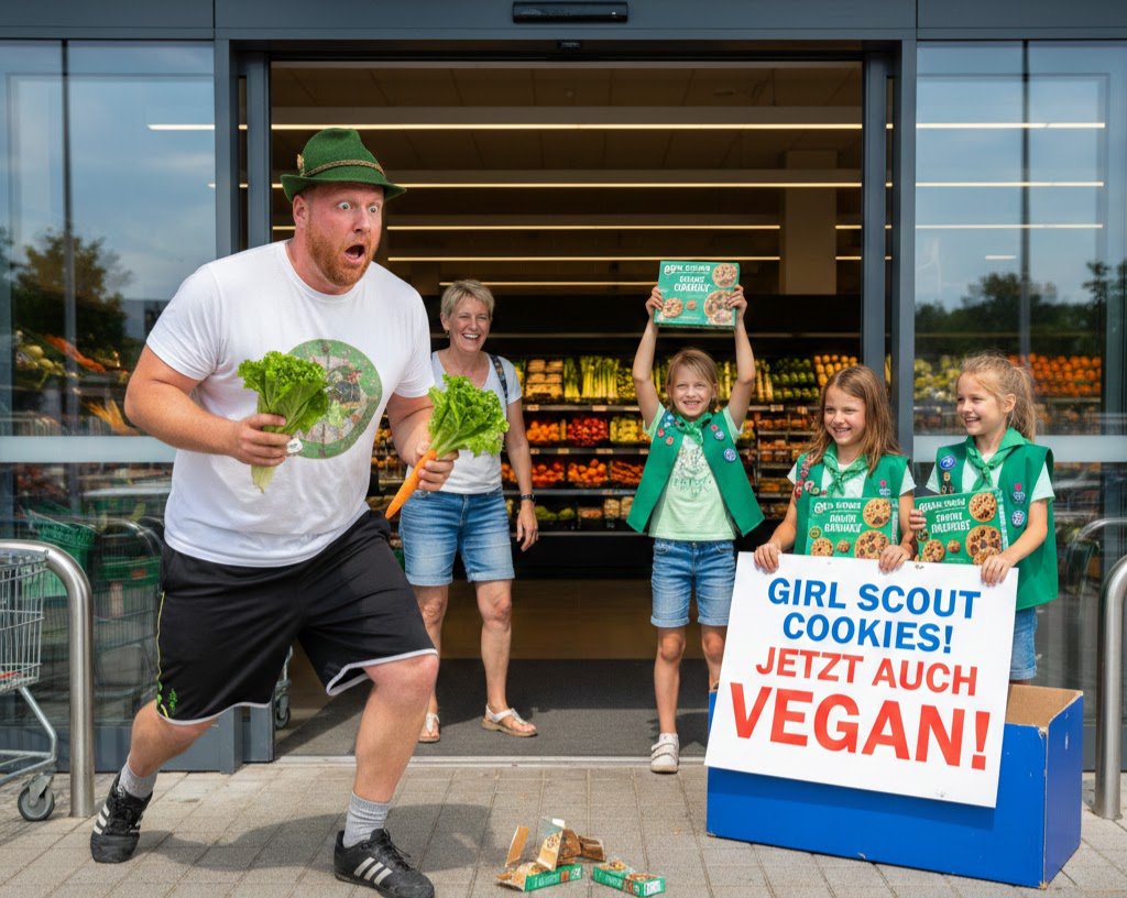 Bei einem Routinebesuch im örtlichen Supermarkt wiederum fand ich mich plötzlich inmitten eines wahrhaft skurrilen Erlebnisses. Kaum hatte ich den Eingang überquert, da standen sie da: die Girl Scouts, umgeben von bunten Aufstellern und verlockenden Plakaten, die für ihre berühmten Kekse warben. Ihre charmante Art und die strategische Verkaufsweise waren sofort auffällig. Die kleine Gruppe schien wie ein meisterlich orchestriertes Verkaufsteam aufgestellt, bereit, jede Shoppingroutine zu durchkreuzen.